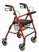 The R420 four wheel model come standard with a removable under seat basket and large 12" x 12" padded seating.  The handle height is adjustable, with locking-loop brakes for easy operation and foldable for transport and storage.  Available in colorful powder coated frames.
