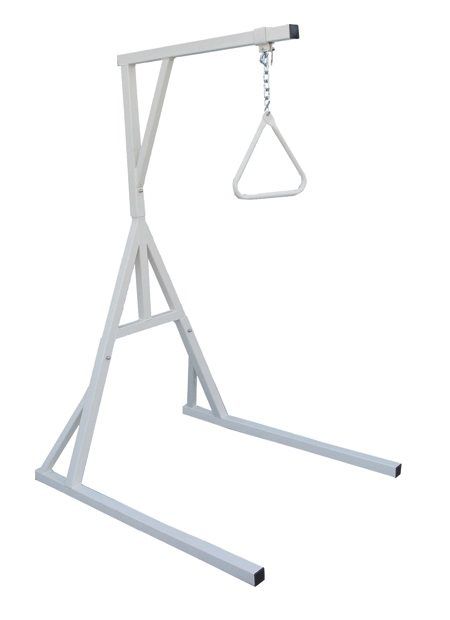 The P270 trapeze bar is made out of durable angular carbon steel frame with a polyester coated finish, with high stress areas reinforced.   It has a free standing base.
